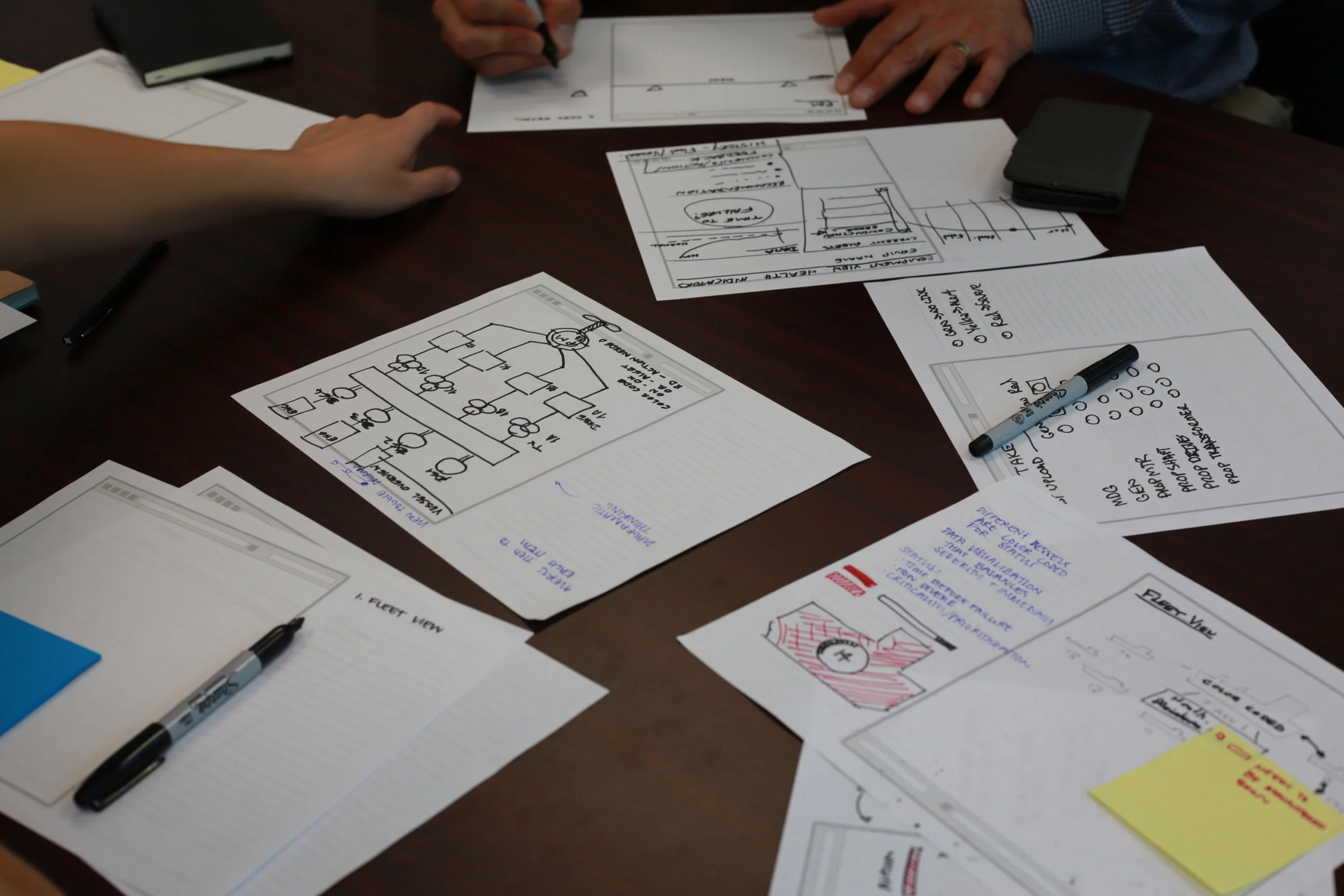 One week later, the GE team and the customer gathered for a three day workshop where we reviewed the research and sketched condition based maintenance solutions with the customer. The following are those sketches.